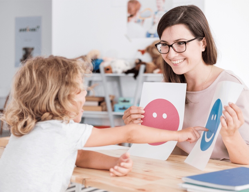 دەتوانێت یارمەتی منداڵانی ئۆتیزم بدات کە چۆن وشەکان بە نیشانەی ترەوە گرێ بدەن لە ڕێگەی گفتوگۆکردن بە شێوازێکی بەردەوام لەگەڵیدا. ئەو نیشانانەی کە نیشانی دەدات منداڵە ئۆتیزمەکە کێشەی هەیە لە تێگەیشتن و ئاخاوتندا بریتین لە: